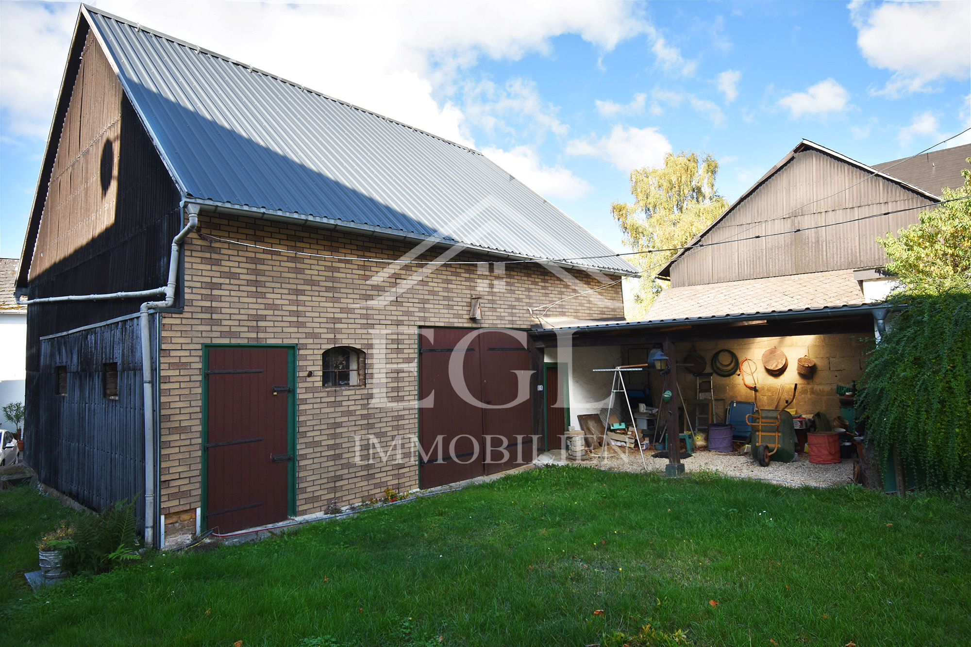 Zum Anwesen gehört eine Scheune mit Carport mit reichlich Stauraum für Geräte und Hobbys. Ihre Fahrzeuge können Sie bequem auf dem eigenen Grundstück abstellen. Der gepflegte Garten mit altem Baumbestand und mehreren gemütlichen Sitzplätzen lädt zum Entspannen und Verweilen ein – ein echtes Paradies für Naturliebhaber.