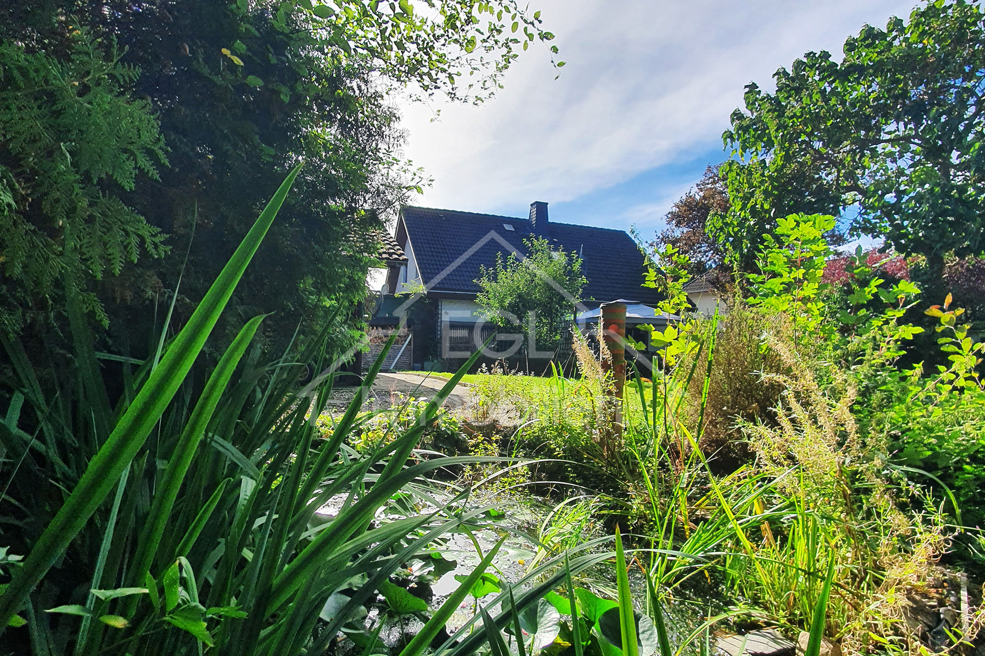 Dieses freistehende Zweifamilienhaus aus dem Jahr 1994 liegt in attraktiver Höhenlage oberhalb des Mittelrheintals in der Ortsgemeinde Auel. Die Immobilie bietet ca. 186 m² Wohnfläche auf drei Ebenen sowie ca. 40 m² Nutzfläche und eignet sich für verschiedene Wohnkonzepte wie Mehrgenerationenwohnen, Teilvermietung oder Wohnen und Arbeiten unter einem Dach. Die Hauptwohnung erstreckt sich über Erd- und Untergeschoss mit rund 132 m² Wohnfläche. Der großzügige Wohn- und Essbereich besticht durch freiliegendes Gebälk, das dem Raum eine besondere Atmosphäre verleiht – eine gelungene Kombination aus offenem Wohngefühl und charmantem Landhausstil. Ein gemütlicher Kachelofen, eine moderne Küche (2010) sowie der direkte Zugang zur großzügigen Terrasse und dem Garten schaffen Wohnqualität mit Wohlfühlfaktor. Zwei Schlafzimmer und ein Tageslichtbad ergänzen diese Ebene. Im Untergeschoss befinden sich zwei weitere Schlafzimmer, ein Bad sowie Hauswirtschafts- und Abstellräume. Die Einliegerwohnung im Dachgeschoss (ca. 54 m²) ist separat zugänglich und umfasst ein Wohn-/Esszimmer mit Balkon, ein Schlafzimmer, Küche und Bad – ideal für die Vermietung oder als Rückzugsbereich. Der großzügige, eingewachsene Garten bietet viel Privatsphäre, eine große Terrasse, Gartenlauben, Obststräucher, einen kleinen Teich sowie Rasenflächen.